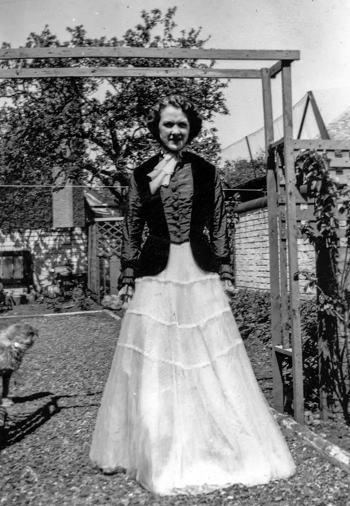 Margaret models an ancient wedding dress 1957.